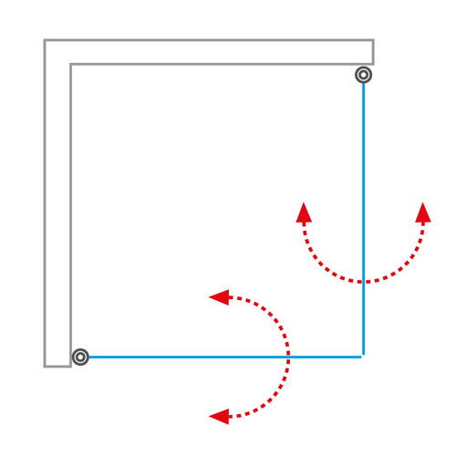 – Rohový kout: Kombinací dvou dveří (v libovolných rozměrech) vytvoříte čtvercový nebo obdélníkový sprchový kout LZCO1+LZCO1.