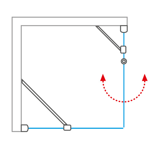 Sestava umožňuje vytvořit čtvercový nebo obdélníkový kout dle aktuálně dostupných rozměrů. Celý komplet je univerzální, takže orientaci dveří (levá/pravá) si zvolíte až při samotné instalaci.