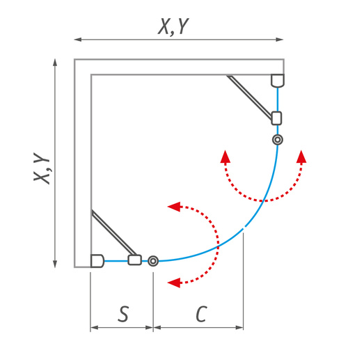 Čtvrtkruhový sprchový kout s dvoukřídlými otevíracími dveřmi